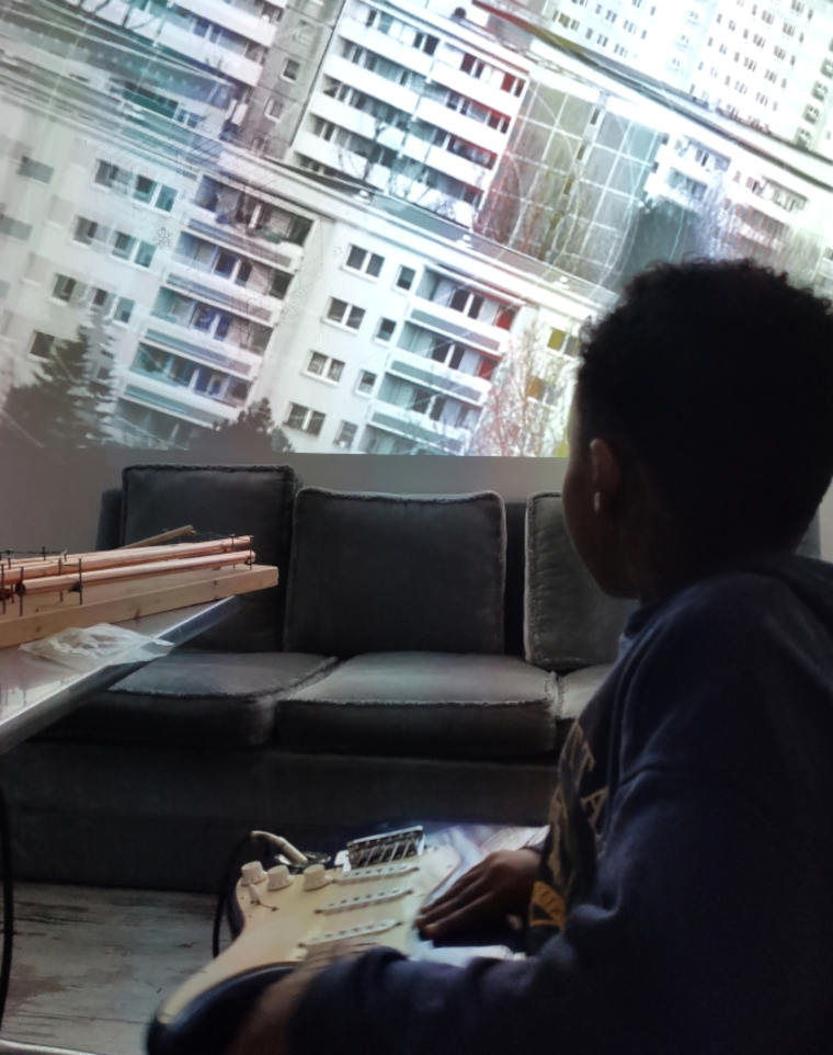 > Im Workshop „Krachbrüder & Donnerschwestern“ bauen wir aus Alltagsgegenständen und coolen Fundstücken unsere eigenen Instrumente und verrückte Klangmaschinen. Mit Kontaktmikrofonen und Effektgeräten bauen wir Sounds, die so noch niemand gehört hat. Im Medienraum visualisiert ihr eure Klänge mit Licht, Schatten, Spiegelungen und Animationen – und projiziert die Visuals mit Beamern an die Wände. Am Ende entsteht ein interaktiver Klangraum, in dem nicht nur ihr, sondern auch die Besucher Musik, Geräusche, Effekte und Visuals erleben und selbst ausprobieren können.